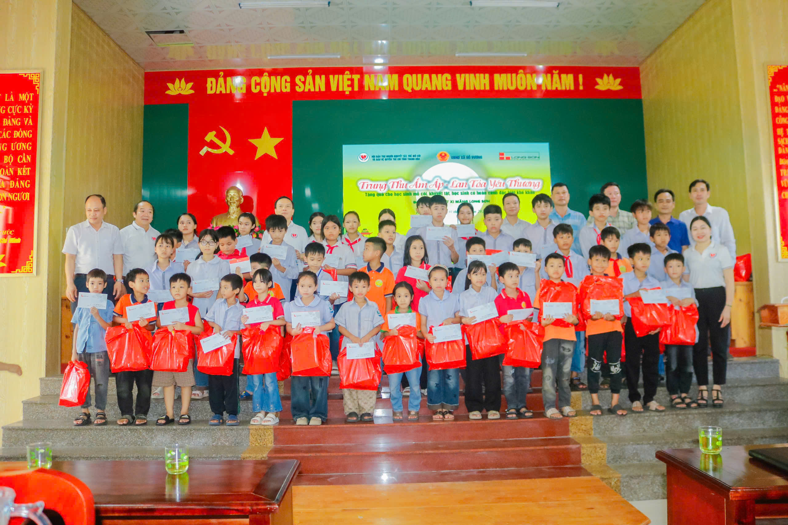 Hội Bảo trợ người khuyết tật, trẻ mồ côi và bảo vệ quyền trẻ em tỉnh đã trao 50 suất quà cho các em học sinh có hoàn cảnh đặc biệt khó khăn xã Hồ Vương