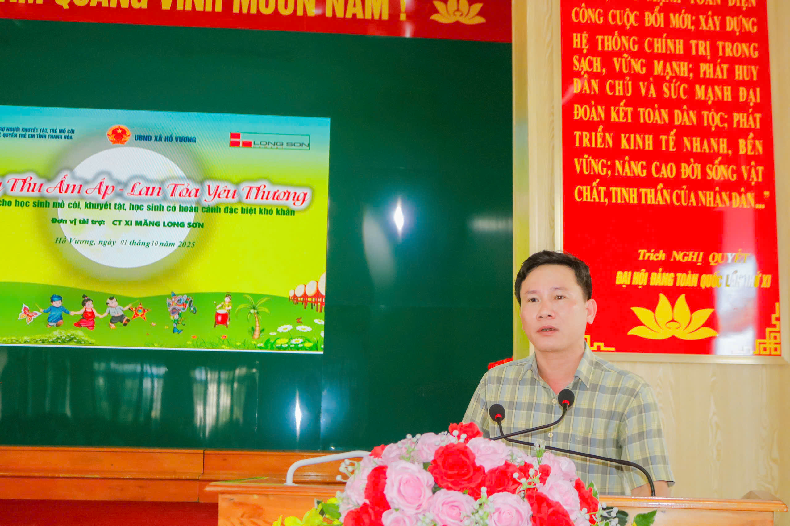 Phát biểu tại buổi lễ, Thay mặt UBND, HĐND hai xã Hồ Vương và Hà Trung, đồng chí Hoả Ngọc Cương, Phó Bí thư, Chủ tịch UBND xã Hồ Vương đã bày tỏ sự cảm ơn sâu sắc đến Hội Cứu trợ trẻ em tàn tật Việt Nam, Hội Bảo trợ người khuyết tật, trẻ mồ côi và bảo vệ quyền trẻ em tỉnh, Ủy ban MTTQ tỉnh, doanh nghiệp, các tổ chức, cá nhân đã đồng hành, chung tay chăm lo cho các em thiếu nhi. Đây là hoạt động mang nhiều ý nghĩa nhân văn, thể hiện sự quan tâm của cấp ủy, chính quyền, doanh nghiệp và toàn xã hội đối với thế hệ trẻ – những chủ nhân tương lai của quê hương.